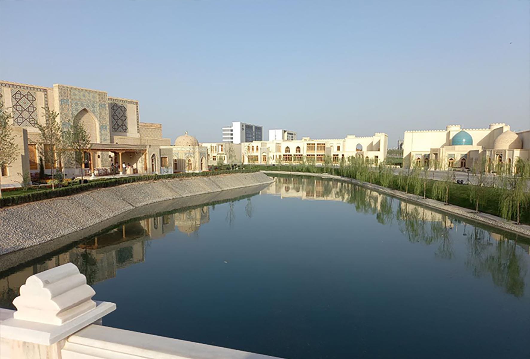 2019 йилда Президент Шавкат Мирзиёев ташаббуси билан катта амбицияли лойиҳа бошланди – Самарқанд туманидаги эшкак эшиш канали бўйида, 212 гектар майдонда улкан мажмуа қуришга киришилди. Аввало, тажрибали меъмор ва муҳандислардан иборат халқаро жамоа жалб этилиб, пухта лойиҳа ишлаб чиқилди. Давлатимиз раҳбари бу ерга бир неча марта келиб, қурилишни миллий меъморчилик анъаналаримиз ва одамларга қулайлик жиҳатидан такомиллаштириш бўйича тавсиялар берди. Бунёдкорлик ишларида малакали қурувчиларимиз билан бирга Туркия, Буюк Британия, Италия каби давлатларнинг етук мутахассислари иштирок этишди.
